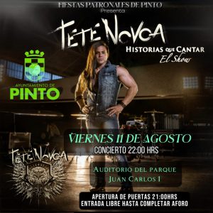 Tete Novoa, continua con la promoción de su más reciente trabajo discográfico, y regresa su ciudad natal, Pinto, Madrid, tras una intensa gira promocional de firmas de discos en varios países de Latinoamérica y presentarse junto a Mago de Oz ante más de 20,000 personas en Monterrey y Ciudad de México. Ahora, en el marco de las festividades patronales de Pinto, Tete Novoa tiene preparado un evento sin precedentes: “Historias que Cantar, El Show”. Este concierto no será simplemente una actuación musical, sino una experiencia única llena de baile, sorpresas y, sobre todo, mucha música. La cita está programada para el viernes 11 de agosto en el Auditorio del Parque Juan Carlos 1, con la apertura de puertas a las 21:00h y el inicio del show a las 22:00h.